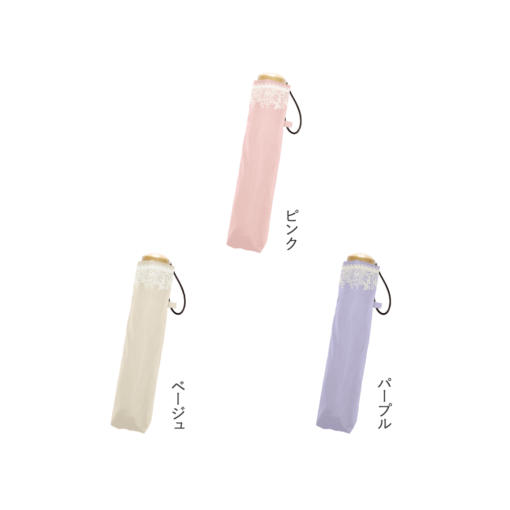 ふちに施されたレースが華やかさを演出、遮光熱効果とUV99%以上遮断を両立しました。