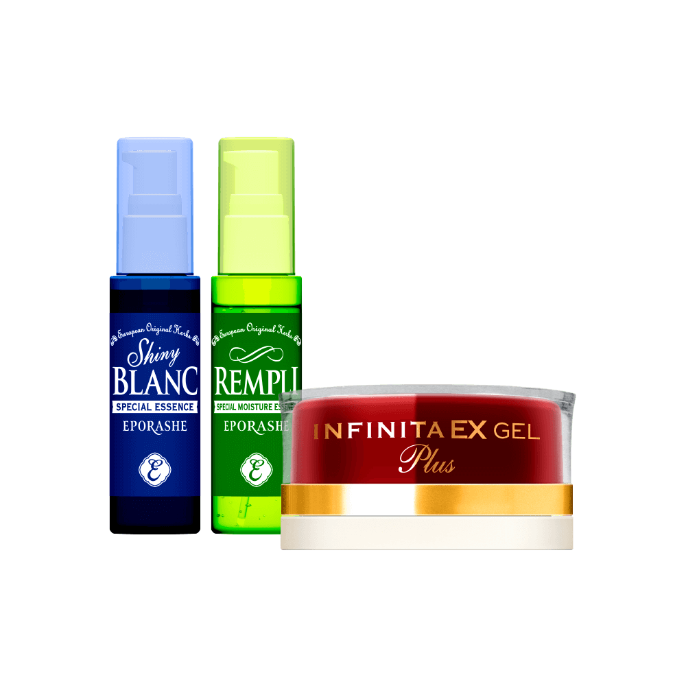 化粧水で肌を整えた後、シャイニーブラン→リンプル→ゲル/クリームの順でご使用ください。
